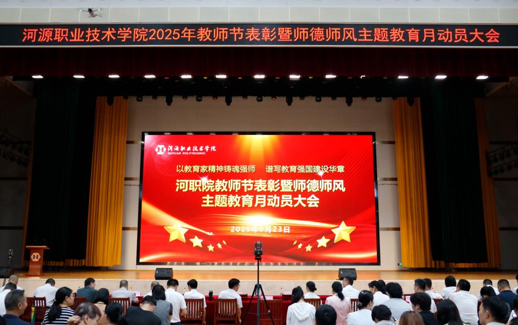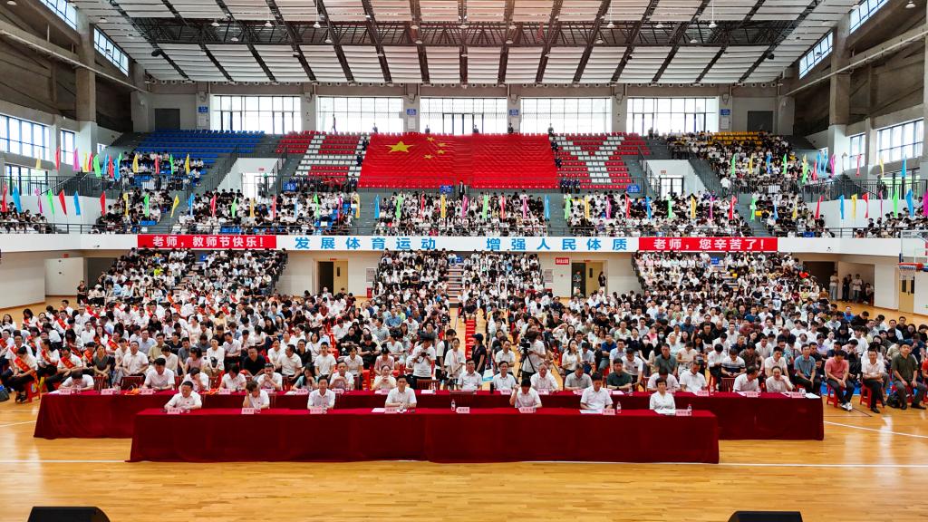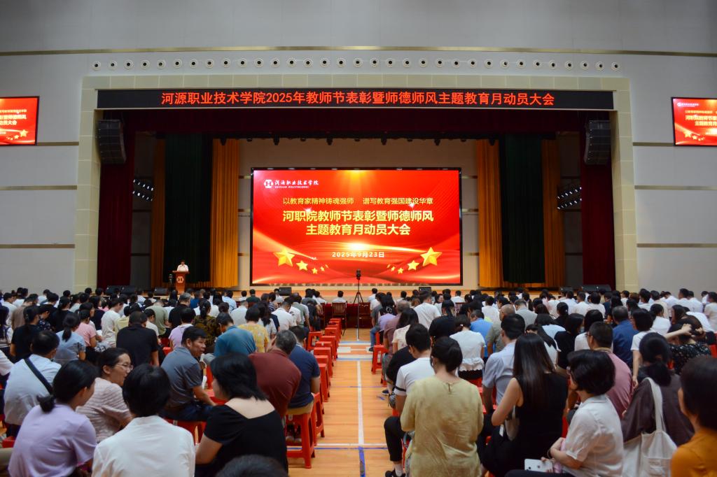 9月23日,我校在体育馆举办2025年教师节表彰暨师德师风主题教育月动员大会。刘贻新校长等全体校领导出席,全体教职工和学生代表参加大会。党委副书记、纪委书记钟茂开主持。