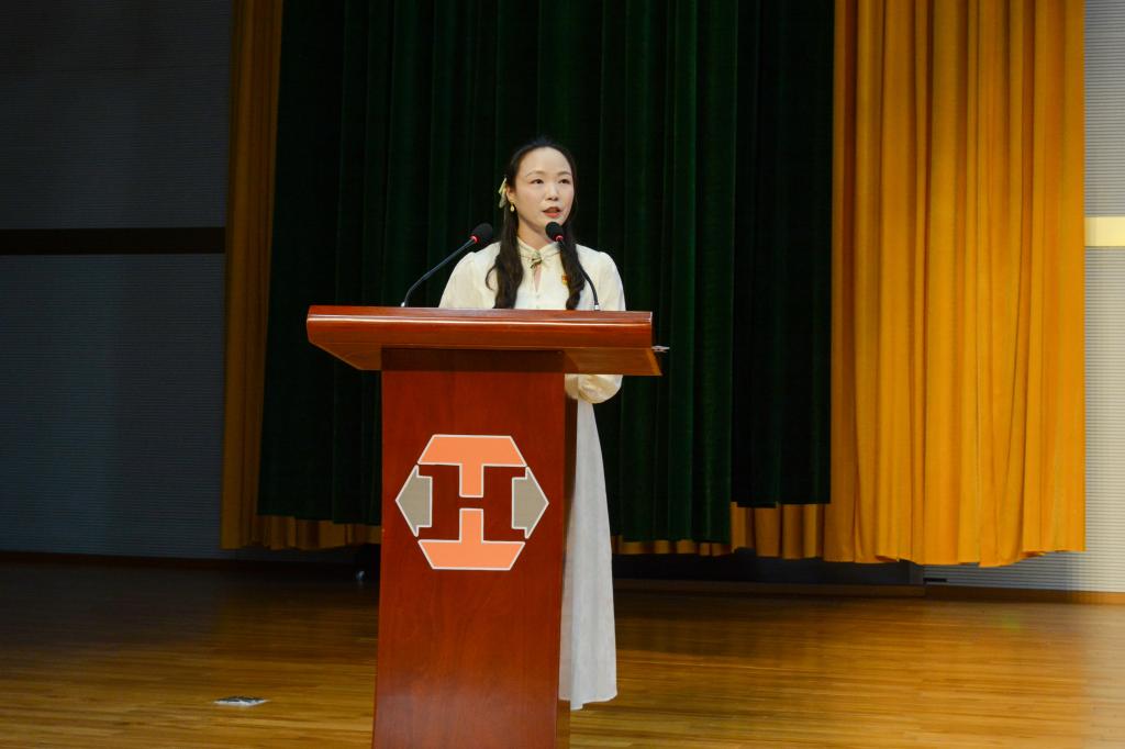 大会在庄严的奏唱国歌仪式中拉开帷幕。随后,学校2024年、2025年新入职教师在优秀教师代表伍懿美老师的带领下进行庄严宣誓。