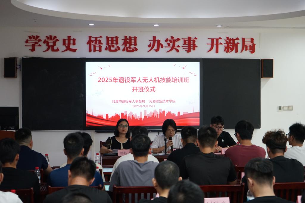 为积极响应国家关于促进退役军人就业创业的号召,拓宽退役军人职业发展路径,9月15日下午,河源市2025年退役军人无人机技能培训班在我校正式开班,来自全市各地的40余名退役军人学员出席了开班仪式。