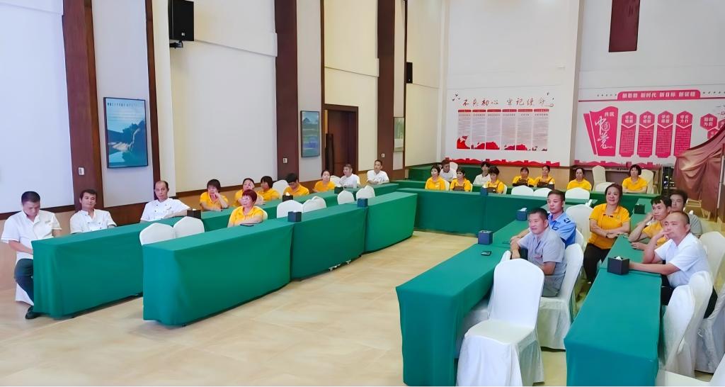 万绿谷休闲度假村组织迎评工作人员在会议室集体学习